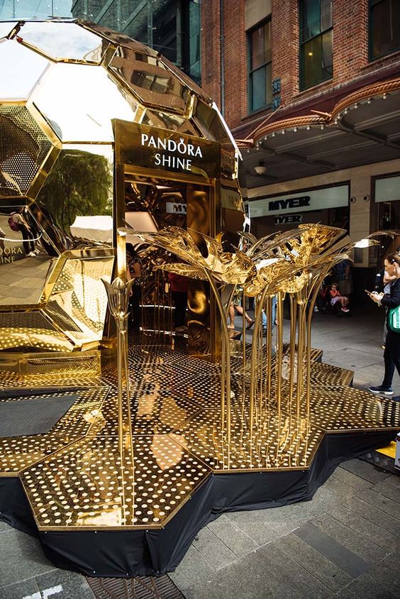 5. ร้านค้าตั้งอยู่ใจกลางกรุง เล่นสีสันด้วย อลูมิเนียมเคลือบสีทองอร่าม